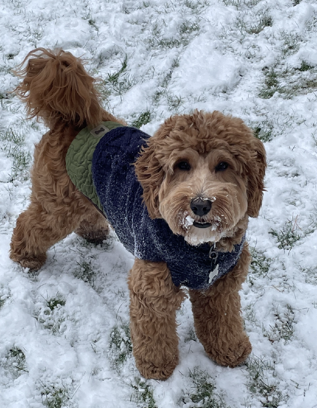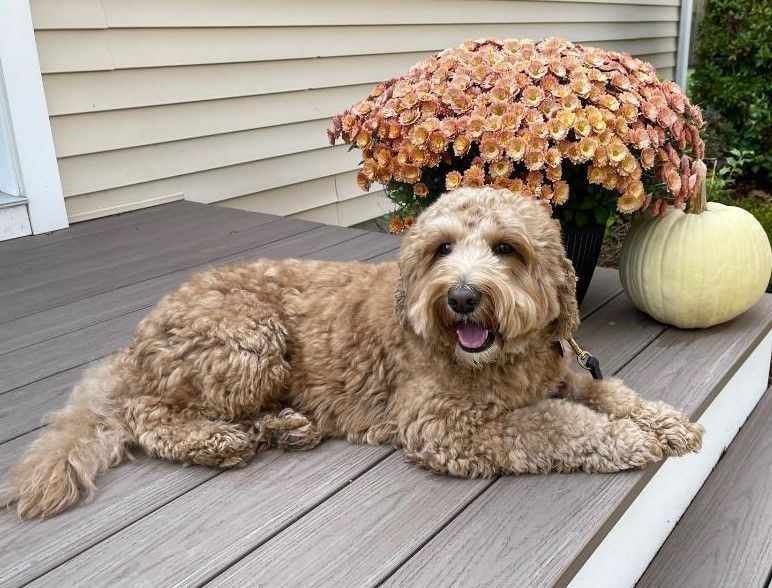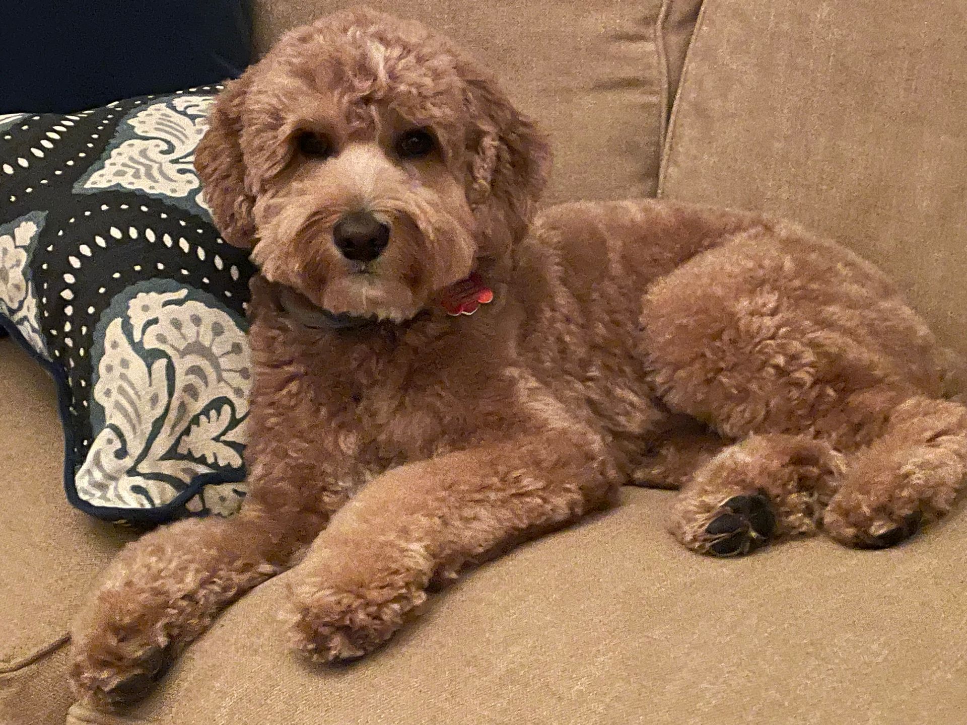 Sawyer has grown into such a sweet and handsome boy! We just LOVE his gentle nature and infectious personality. He is truly loved by all. Sawyer is a gorgeous dark apricot and as he has darkened with age, probably carries the Rufus gene like his mother, Woodbridge Fly Me to the Moon, Ruby. He is a solid boy! Sawyer loves snuggling with his family and keeping them laughing! Thank you to the Giurini family for loving Sawyer so much!