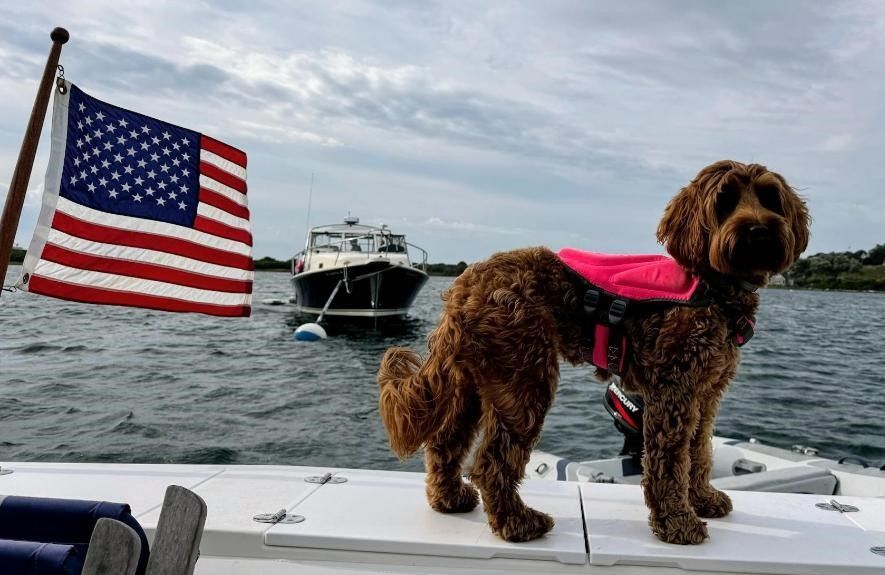Tilly is the apple of her family's eye! This little red cutie is so full of charm. She is as sweet as she is adorable. Tilly and her family worked very hard to gain her the title of Canine Good Citizen! A lot of work goes into training a dog and they are certainly reaping the benefits of their hard work. Tilly goes on many of adventures with her family, including seasonal weekends on their boat. Thank you to the Marcotte family for loving Tilly so much!